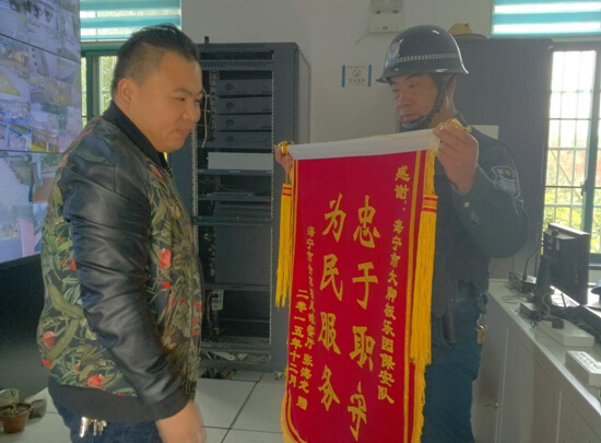 大腳板保安員收到一面感謝錦旗