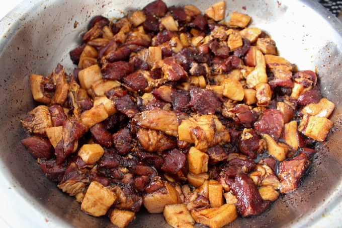 整塊的土豬肉餡包裹在飽滿軟糯的糯米里
