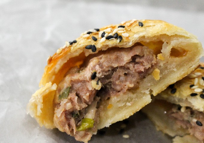 安保土豬肉月餅,吃的是就是個(gè)“鮮”字。出鍋時(shí)熱騰騰的香氣,皮子最外層薄薄的焦黃脆殼,透著點(diǎn)兒芝麻香,看著真叫人流口水。 酥皮不用說(shuō)了,特別是剛出爐的時(shí)候,咬上一口,脆掉渣!里層酥皮則被肉汁浸得滋潤(rùn),肉餡的肉質(zhì)緊實(shí),帶一點(diǎn)點(diǎn)汁水,土豬肉餡的鮮香味還真不是一般豬肉可以比的,就算是燙了舌頭也不肯�?凇�