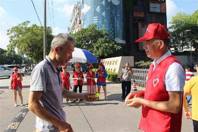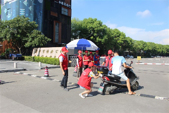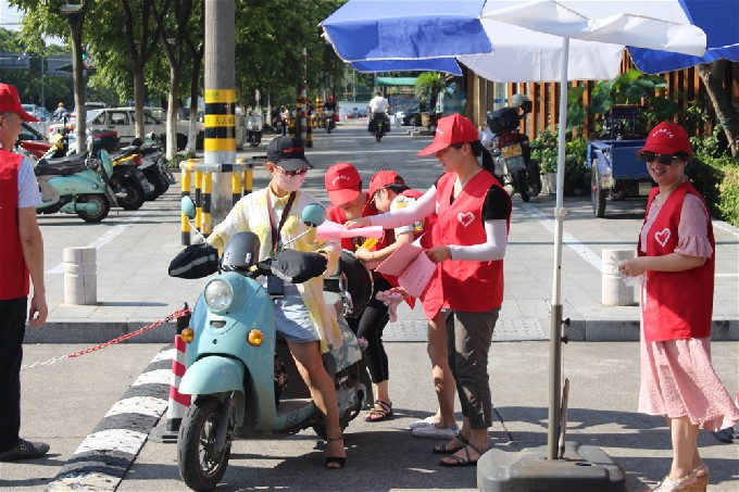 今天,我們的志愿者一早來到公司門口,趁著上班高峰期,微笑著向騎電動(dòng)車的市民發(fā)放倡導(dǎo)書,提醒他們要戴上安全頭盔,注意行車安全,并一一幫助他們貼上“車標(biāo)”。盡管夏日炎炎、滿頭冒汗,卻抵不住大家對(duì)文明宣傳的熱情!