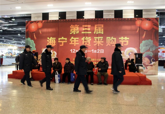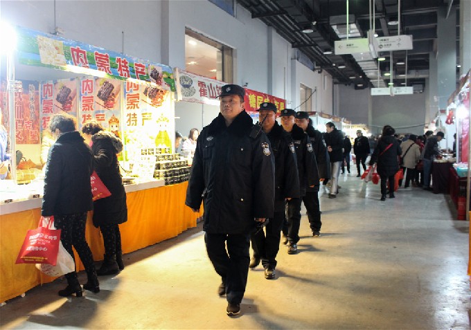 12月29日—1月2日,“第三屆海寧年貨采購(gòu)節(jié)”在海寧會(huì)展中心隆重舉辦。海寧市保安服務(wù)公司承擔(dān)了此次展會(huì)的安保工作,主要負(fù)責(zé)安檢、場(chǎng)內(nèi)巡邏和周邊治安、交通秩序的維護(hù)。