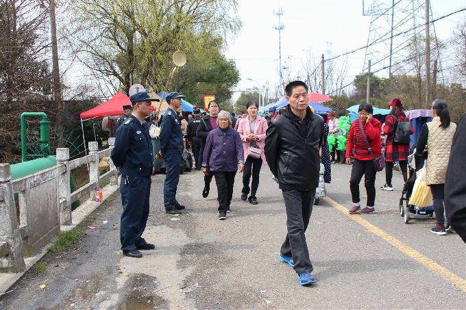 “軋?zhí)?rdquo;位于一條貫穿東西的公路上,綿延很長(zhǎng)。我們?cè)诒0膊贾蒙喜扇‰A段模式,即每隔一路段,安排保安小組站崗執(zhí)勤,加強(qiáng)對(duì)參與集會(huì)活動(dòng)群眾引導(dǎo),防止發(fā)生局部地段因人員密集發(fā)生擁擠踩踏事故。并密切關(guān)注來(lái)往游客和攤位秩序,及時(shí)處置各類(lèi)糾紛,防止案(事)件的發(fā)生。