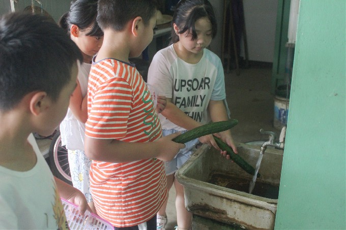 休息整頓之余,大家圍坐在一起交流心得體會(huì),再親手洗一根自己采摘的黃瓜,品嘗新鮮的勞動(dòng)成果。消暑的黃瓜入口涼意十足、沁人心脾~